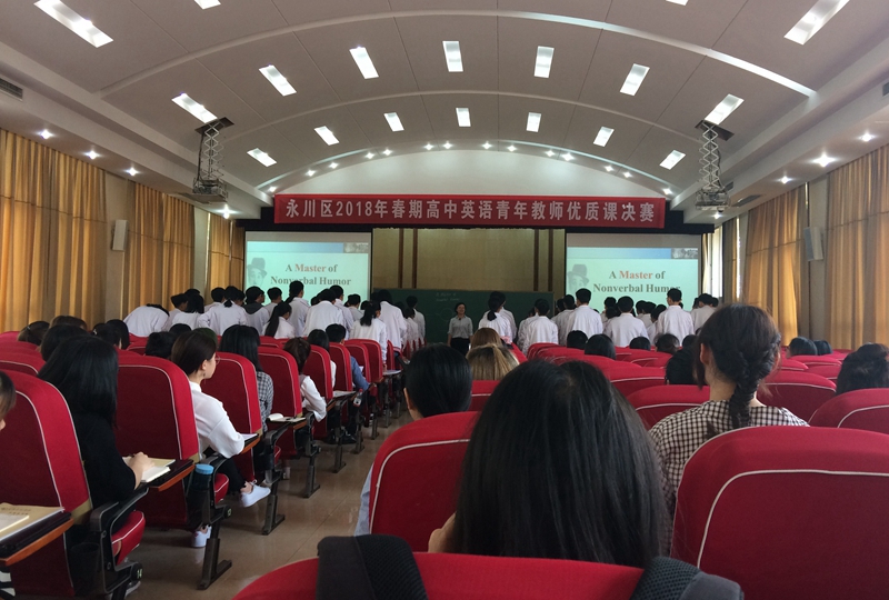 2018年4月19日,公司组织2015级和2017级英语(师范)专业全体员工前往北山中学观摩“永川区2018年春期高中英语青年教师优质课决赛”。 本次比赛由永川区教委主办,北山中学承办,来自永川中学、北山中学、萱花中学、景圣中学等7所中学的参赛教师同台献技。
