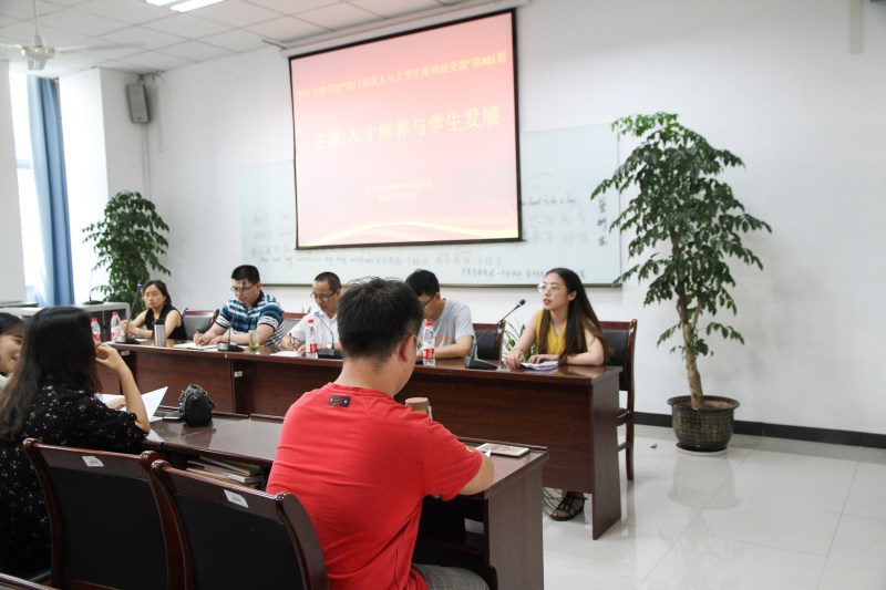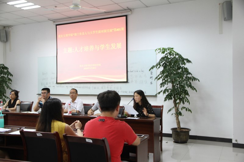 5月20日晚上,公司在格术楼C701开展了第401期太阳成集团tyc33455cc“部门负责人与老员工面对面交流”活动。公司党总支书记、副经理颜学金,副经理胡庆洪,学工办主任、团总支书记张铁红,教研室主任、辅导员刘俊玲以及2015级100余名意向考研员工参加了本次交流活动。