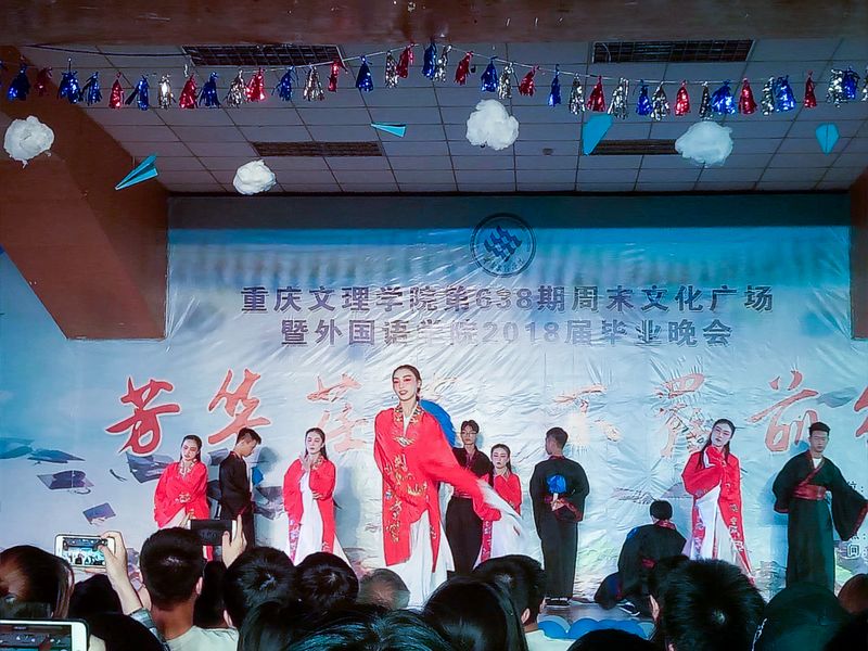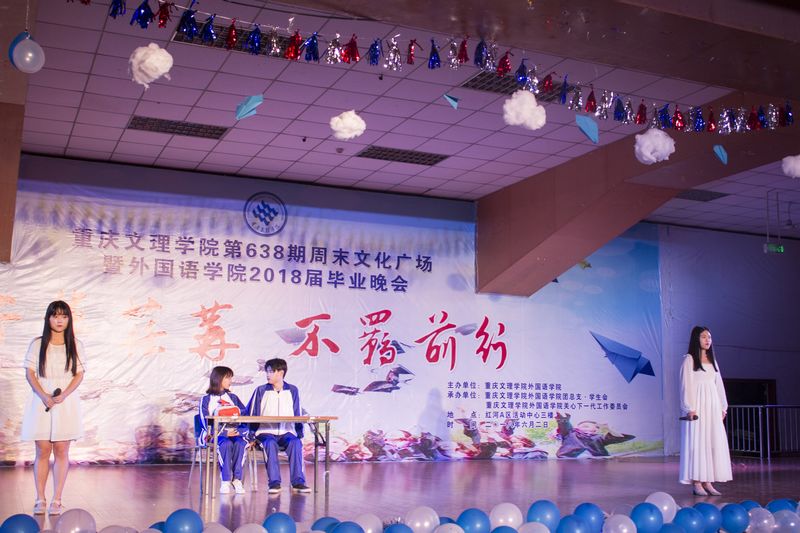 本场晚会以“芳华荏苒,不羁前行”为主题,在乐队《跳》&《毕业设计》的表演中拉开序幕。整场晚会气氛活跃,内容丰富,表演精彩,吸人眼球。其中,韩舞《so hot》、舞蹈剧《高等battle》活泼又奔放,极具视觉冲击力;吉他演唱《再见》、《小幸运》美妙动听;古典舞《典狱司》轻盈飘逸、悲壮豪情。最后,晚会在歌声宛转优雅的《歌曲串烧》中落下帷幕。