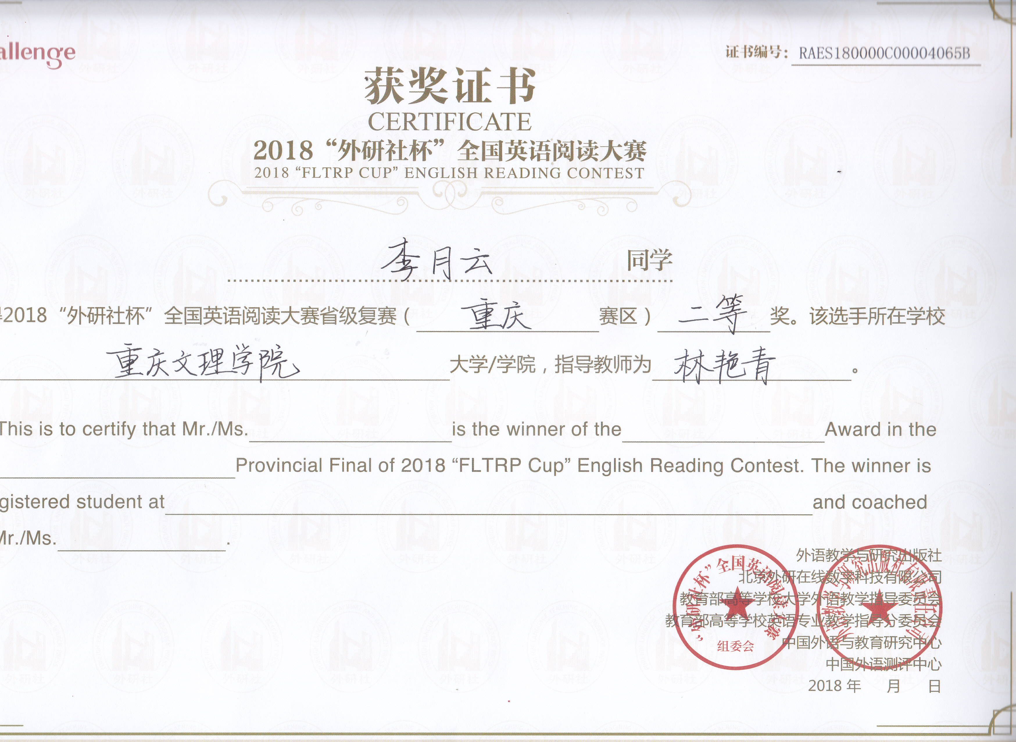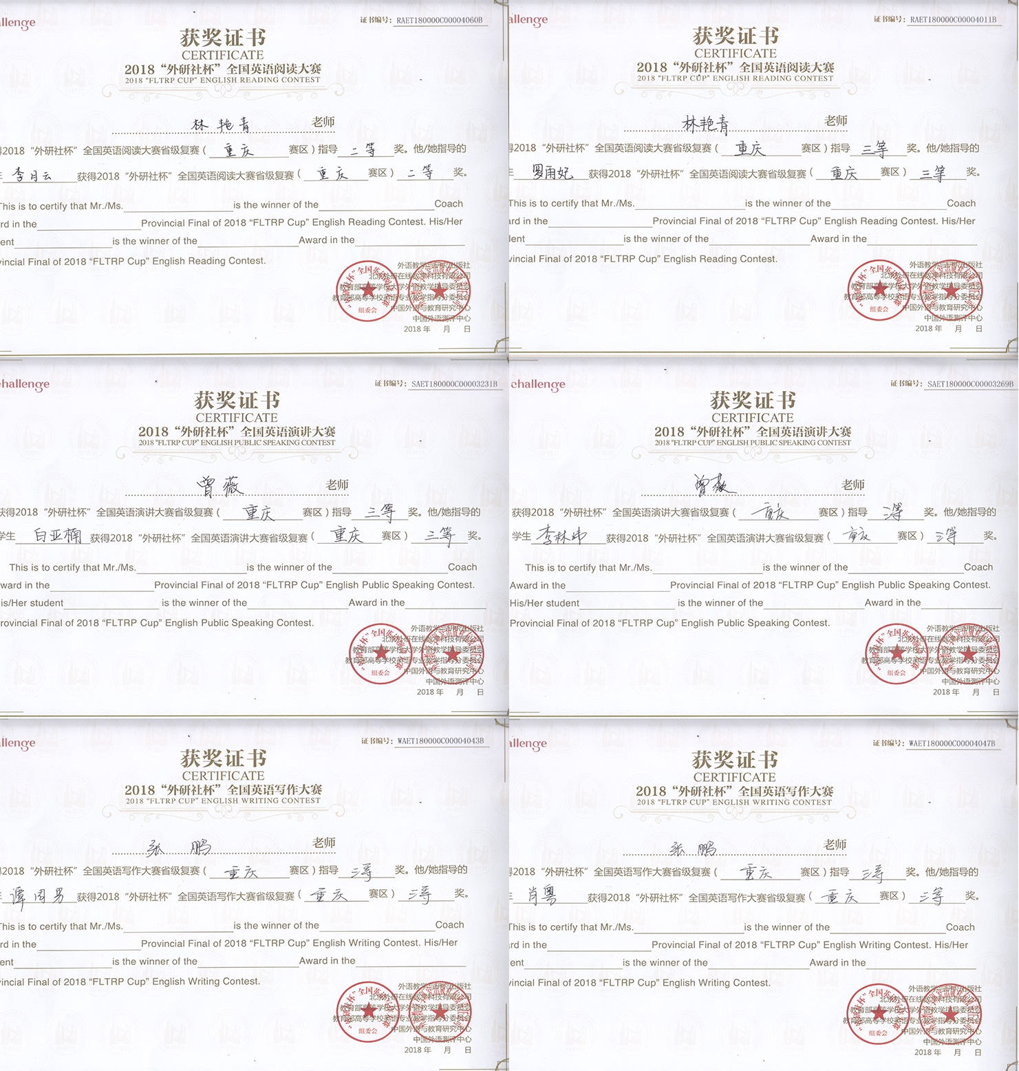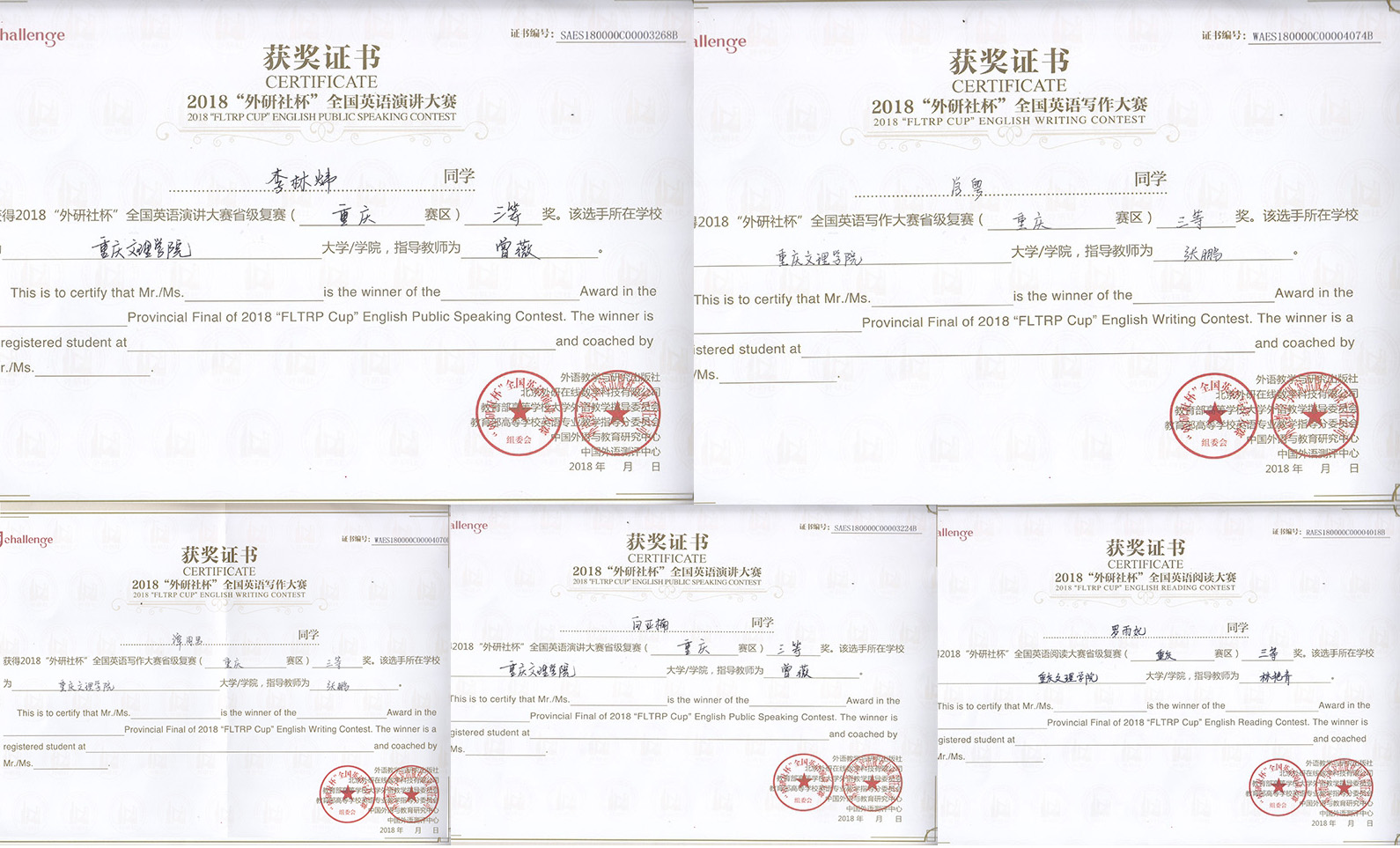 公司选派了六名选手参赛。经过层层角逐,由林艳青老师指导,来自太阳成集团tyc33455cc的李月云同学荣获英语阅读比赛的二等奖,来自教育公司的罗雨妃同学荣获英语阅读比赛的三等奖。由张鹏老师指导,来自太阳成集团tyc33455cc的谭周男同学和教育公司的肖粤同学荣获本次写作大赛的三等奖。由曾薇老师指导,来自太阳成集团tyc33455cc的李林炜同学和材料与化工公司的白亚楠同学分获演讲比赛英语专业本科组和大学英语本科组的三等奖。