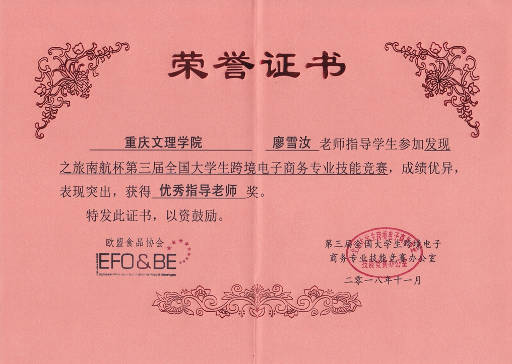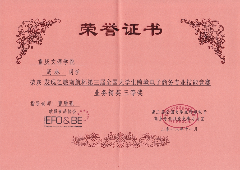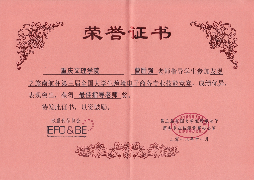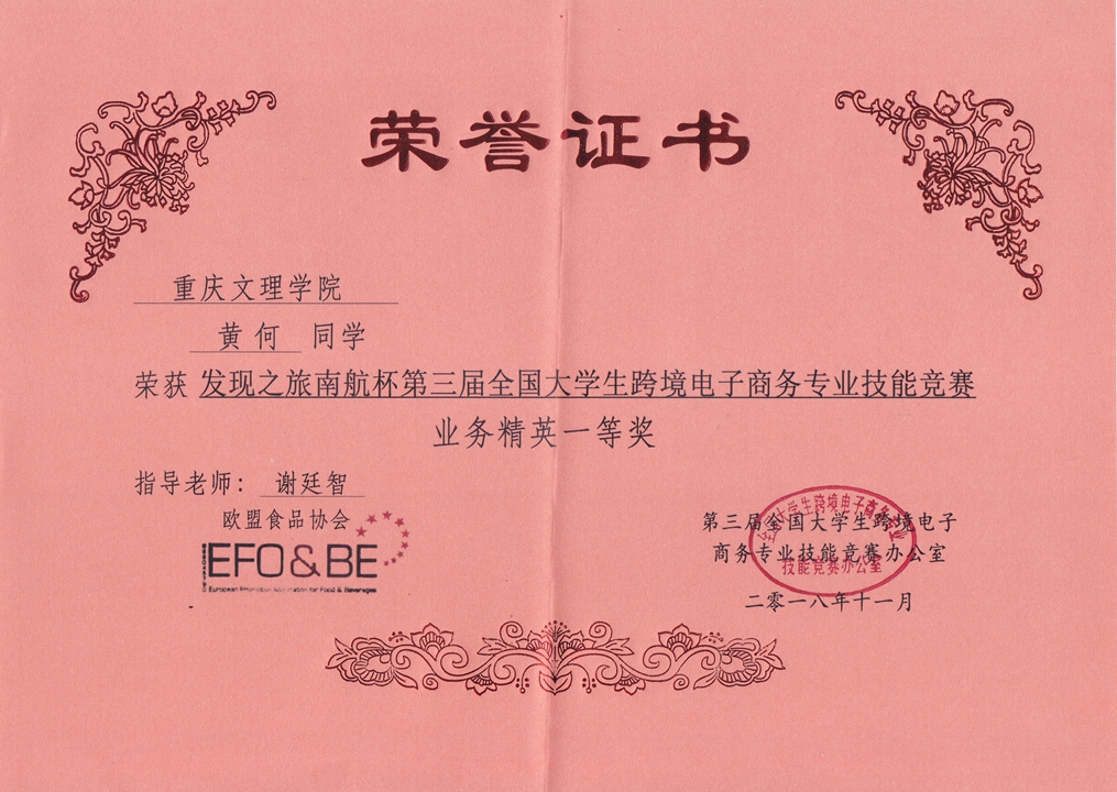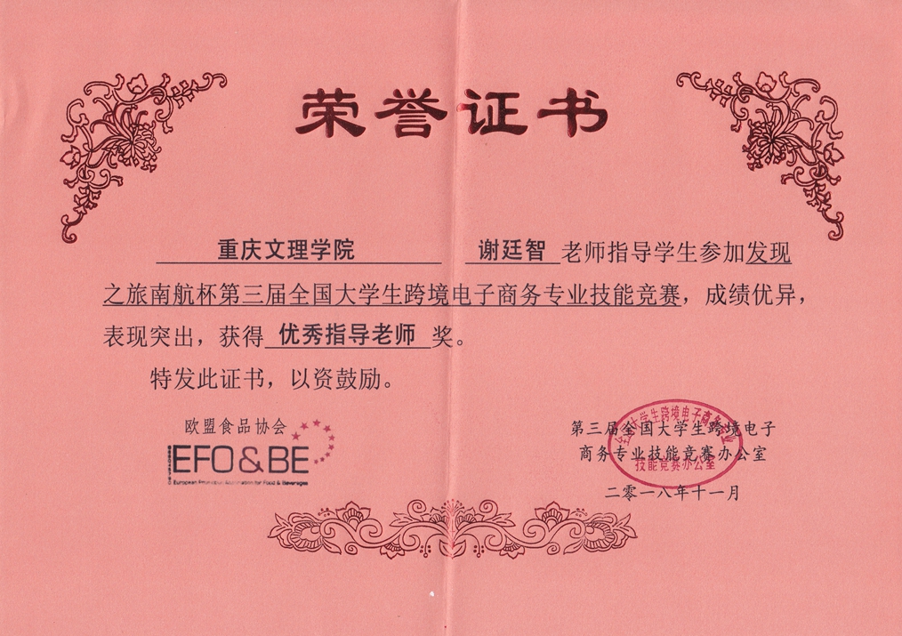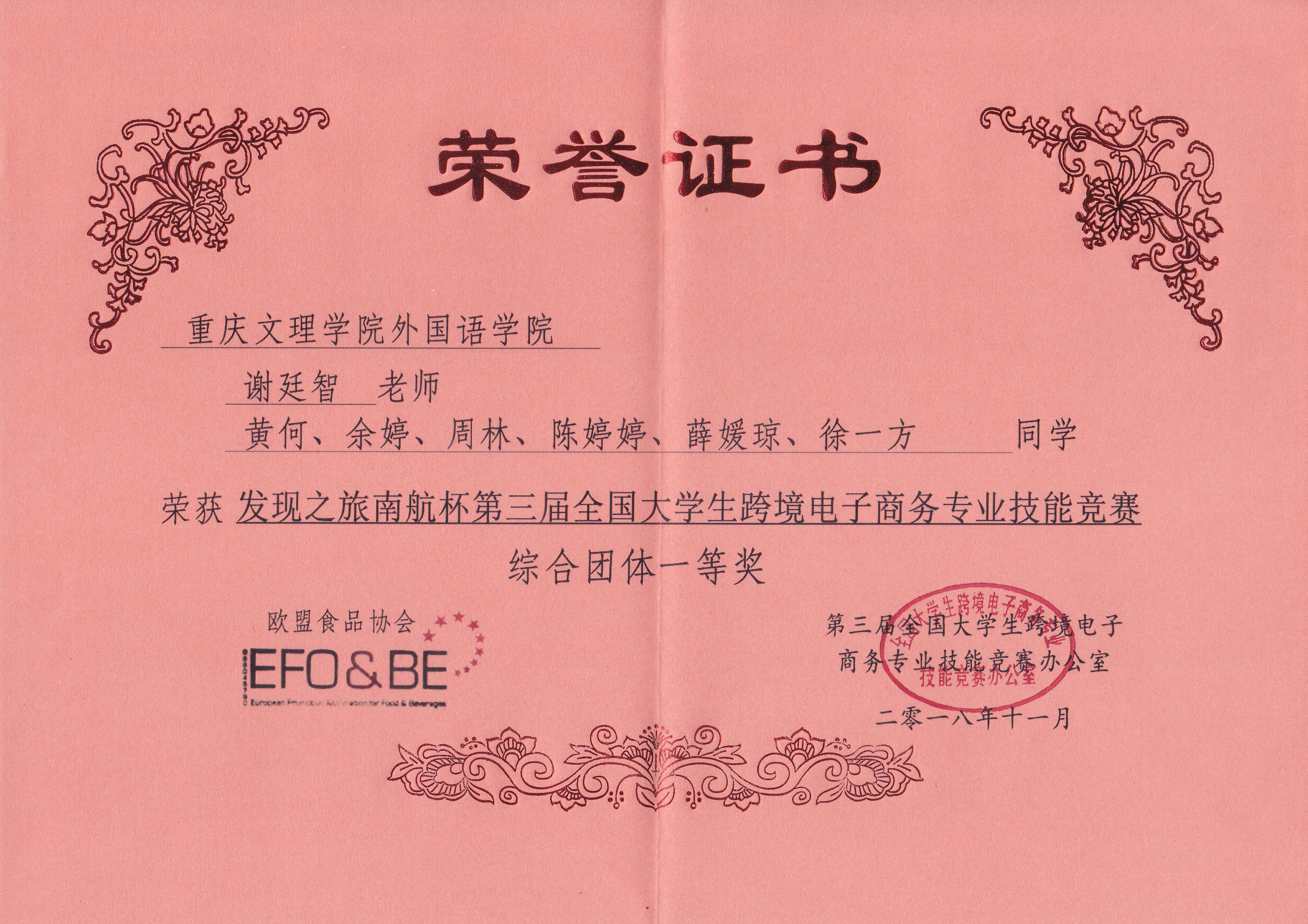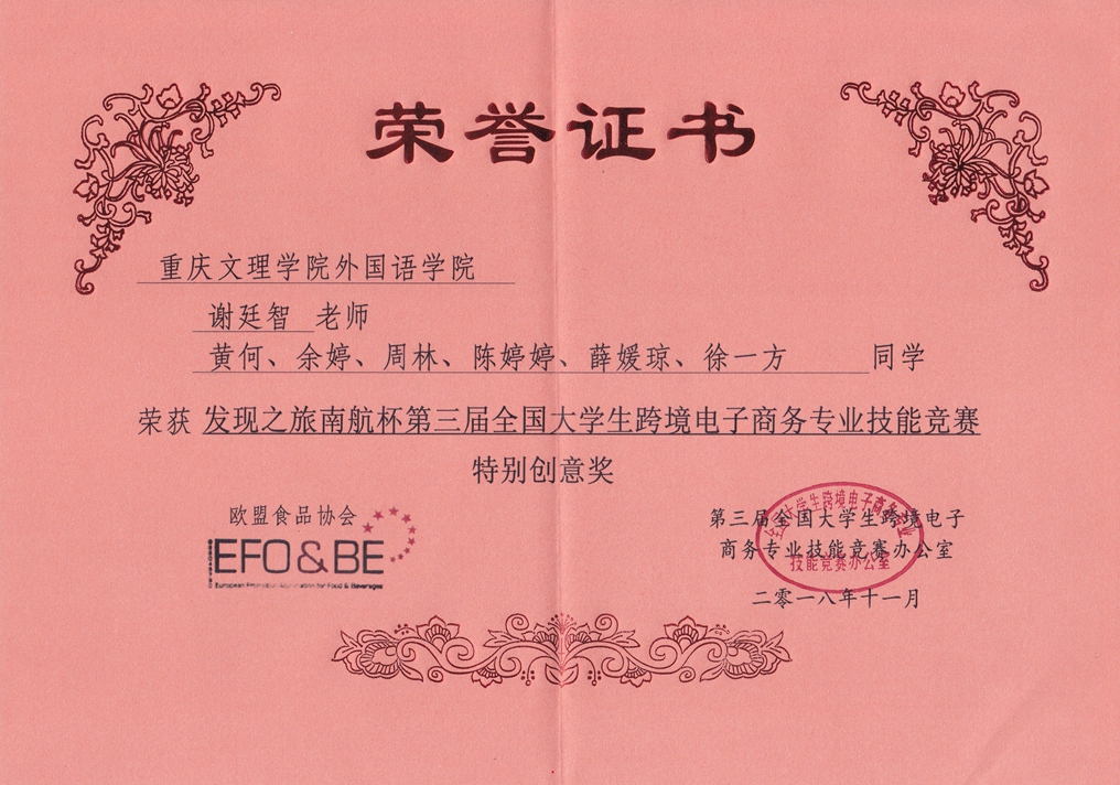 2018年11月16日-17日,2018年发现之旅南航杯第三届全国跨境电商技能大赛决赛在电子科技大学成都公司隆重举行,公司商务英语专业六名员工组成的代表队,在商务英语教研室主任曹胜强及项目负责人谢廷智老师的带领下参加了本次比赛。