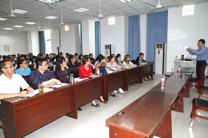 应公司邀请,四川外国语大学副董事长、二级教授、博士生导师、中文核心期刊《外国语文》和CSSCI集刊《英语研究》主编董洪川教授于2019年4月19日在公司格术楼A701作了题为“文学经典与大学教育”的学术讲座。此次讲座由公司党总支书记颜学金主持,公司文化文学研究方向的教师、员工代表90余人聆听了讲座。