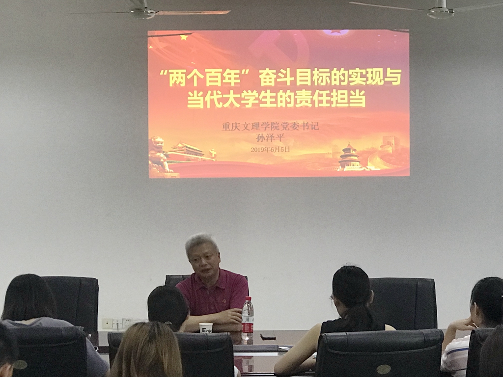 孙泽平强调,老员工要深入学习贯彻党的十九大精神,要牢记习近平总书记对青年人的嘱托,忠于祖国、忠于人民。要认清当前严峻的国际形势,理性爱国,做有担当的青年,为全面建成小康社会和中华民族的伟大复兴而奋斗。同学们纷纷表示,通过本堂党课,对“两个百年”的奋斗目标有了更深刻的理解。作为新时代新青年,应时刻牢记时代赋予的使命和责任,刻苦学习,锤炼本领,为两个一百年奋斗目标的实现贡献力量。