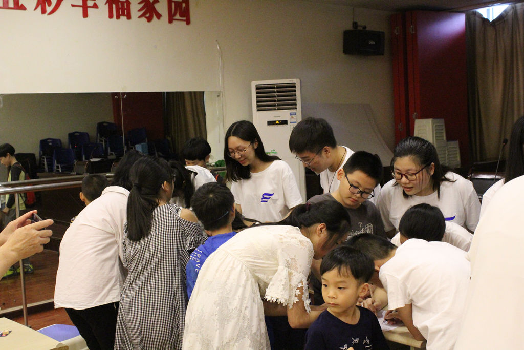 为落实教育服务理念,发扬无私奉献的志愿者精神,服务团来到了北碚区云清路社区公司,通过与管理老师的交谈,深入了解孩子们的学习和生活情况,开展“趣味英语课堂”,通过简笔画和卡通式样的折纸等教学方式,提高孩子的学习兴趣,让孩子们进一步领略英语魅力。通过训练,孩子们的表达能力得到进一步的提高。