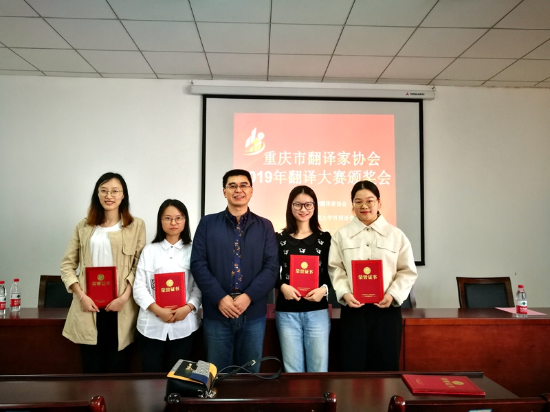 9月21日上午10:00,由重庆市翻译家协会所主办的2019年翻译大赛颁奖会暨协会成立十周年庆祝会在重庆师范大学(大学城校区)隆重举行。公司4名获奖同学在胡庆洪副经理的带领下参加了此次颁奖会。重庆市翻译家协会会长刁承俊、副会长杨开显、罗益民、王方路、荣誉会长杜承南及本次翻译大赛获奖者代表共计90余人出席了本次颁奖会。