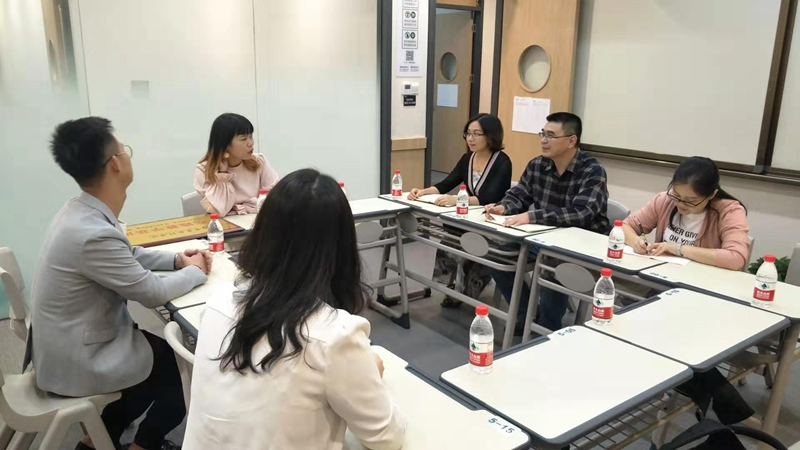 调研会上,新东方公司首先就办学条件及成效进行了详细介绍,对公司员工的优秀表现给予了肯定。随后,双方就英语教师岗位要求、能力素质、实习实训、课程设置等进行了深度交流,并听取了公司员工对母校人才培养的建议。最后,公司与永川新东方公司就实习基地达成了共识,并向新东方公司授牌。