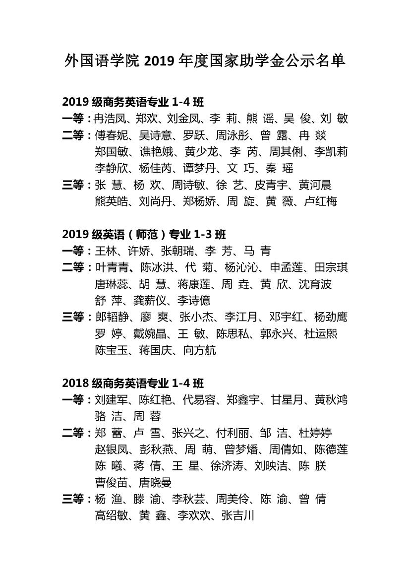 太阳成集团tyc33455cc2019年度国家助学金公示名单