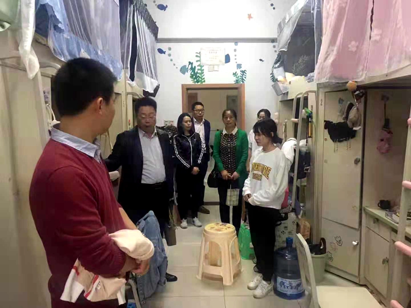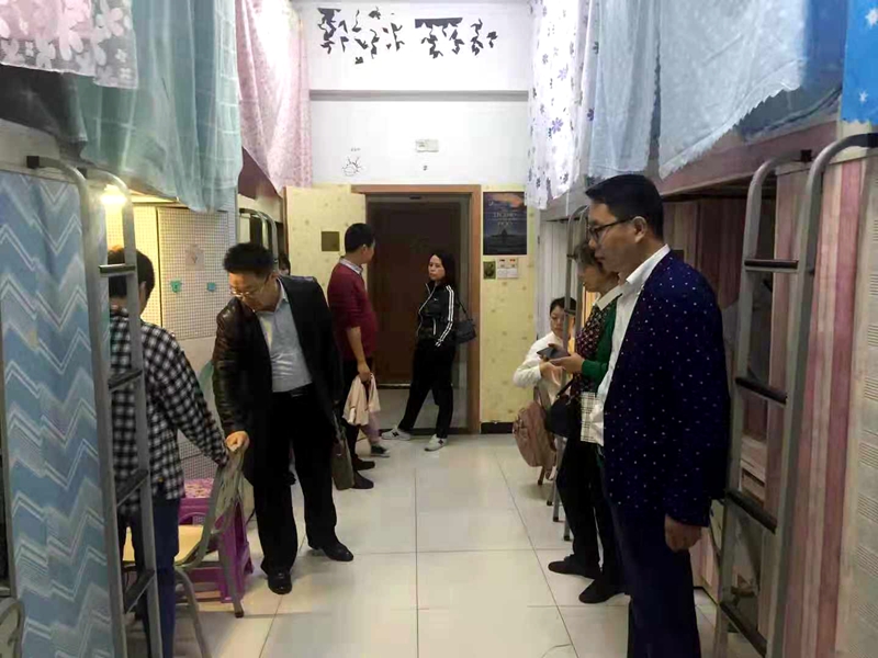 10月16日下午,在公司党总支书记杜勇的带领下,张萍、李桂芳、张铁红、邹盛瑜老师深入桃苑、李苑,就员工宿舍安全用电、内务整理、防诈骗、防火防盗,使用大功率用电器以及文明寝室系列活动开展等情况开展了突击检查。
