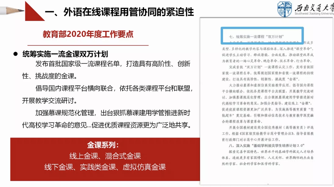 4月13-19日,外语教学与研究出版社举办了“英语类专业金课建设与教学研究系列工作坊”。邀请国内知名专家,采用线上研修的方式,共同探讨英语类专业“金课”建设与教学研究。公司组织所有专任教师参加了线上研修,并开展了“金课”建设专题教研活动。
