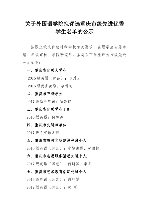 关于太阳成集团tyc33455cc拟评选重庆市级先进优秀 员工名单的公示