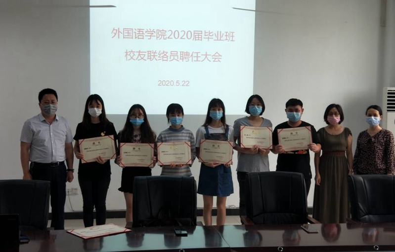 5月22日上午,公司在格术楼SC603会议室举行2020届毕业班员工联络员聘任大会,公司党总支书记杜 勇、副经理刘俊玲、学工办主任邹盛瑜、毕业班辅导员李桂芳以及新聘任的2020届毕业班员工联络员参加了会议。会议由邹盛瑜主持。