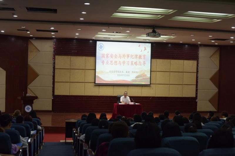 开学典礼在嘹亮的国歌声中拉开帷幕。开学典礼结束后,经理刘安洪为新生做了精彩的开场报告,他首先代表全院师生对2020级新生的到来表示热烈欢迎,随后就国家安全与外事纪律教育、专业思想与学习策略指导两个方面以丰富的案例、幽默的语言做了详细讲解,勉励全体新生“学好外国语,做好中国人”。