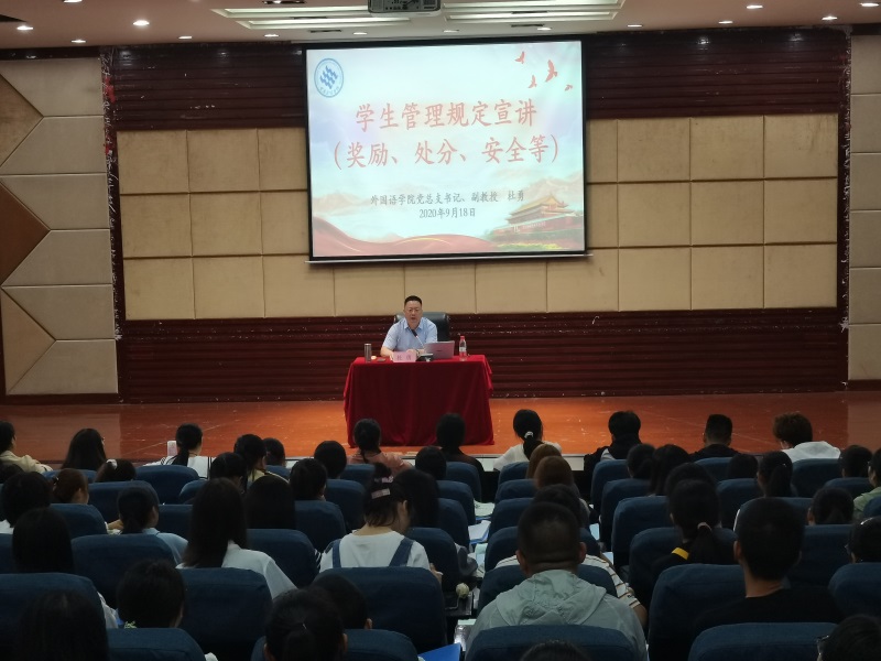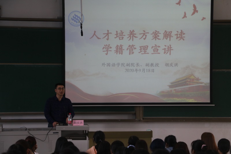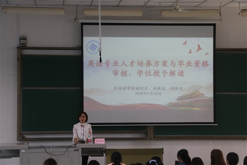 胡庆洪副经理就人才培养方案以及学籍管理进行了解读,让新生对专业学习有了进一步的认识;刘俊玲副经理对英语专业人才培养方案与毕业资格审核、学位授予做了细致的讲授,使新生在专业学习方面有了更明确的目标。