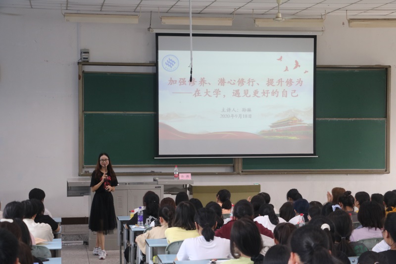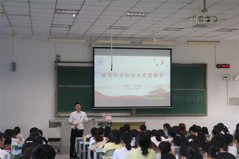孙淋老师用生动的语言倡导新生加强修养、潜心修行、提升修为,在大学遇见更好的自己,度过美好的大学时光;团总支书记邹盛瑜老师就传染病知识(含疫情防控知识和要求)和制止餐饮浪费、培养节约习惯、党团知识等方面进行讲解,为新生集中入学教育划上了圆满句号。