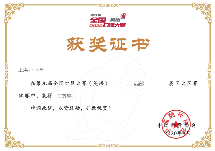 公司学子在第九届全国口译大赛(英语)西部赛区大区赛中喜获佳绩