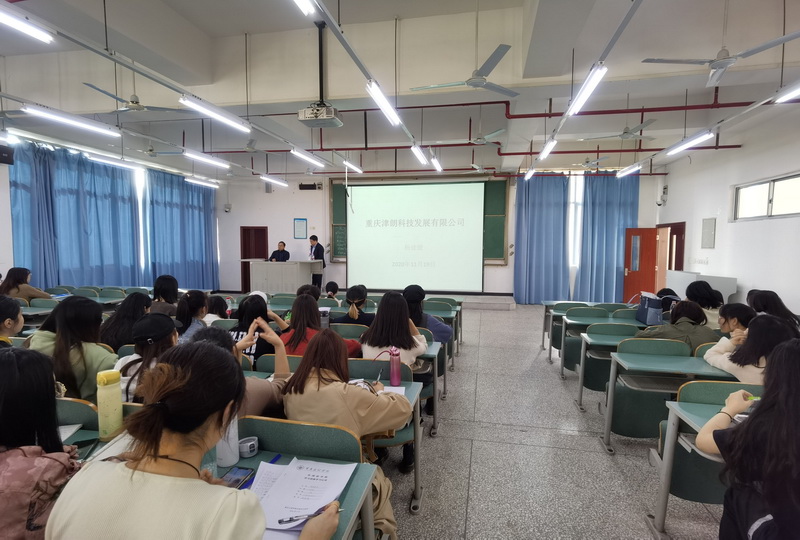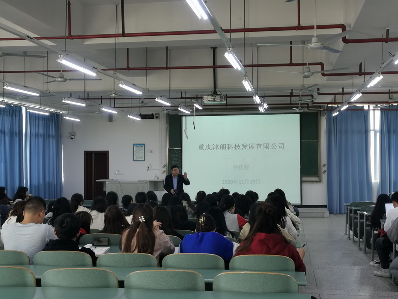 杨总以“川渝地区外贸发展与对策研究”为主题,从川渝地区外贸发展现状、近期热点分析、老员工职业生涯规划、社会适应性与竞争力培养、专业相关岗位介绍等几个方面展开,他风趣幽默的语言给在场师生留下了深刻印象,员工颇受启发。最后,杨总就同学关心的专业能力培养、实习前准备、就业选择等话题进行了现场解答。