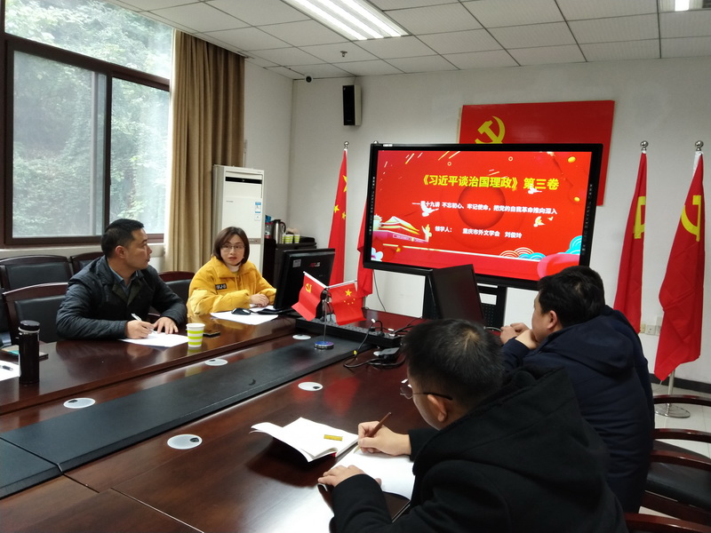本次年会分为两个阶段,第一阶段为中共重庆市外文学会党支部-中共重庆博教科技股份有限公司党支部2020年联合组织生活会及重庆市外文学会常务理事会。公司副经理刘俊玲作为重庆市外文学会党支部统战委员,在组织生活会上领学了《习近平谈治国理政》第三卷第十九讲《不忘初心,牢记使命,把党的自我革命推向深入》。大会还评选了重庆市外文学会第一届“青年学者优秀论文”,公司谢柯教授的论文《基于传播学的中国当代文学三阶段译传模式》、杨巍副教授的论文《图书馆科技查新翻译工具的正确有效使用》均荣获二等奖,得到了市内兄弟院校的高度称赞。