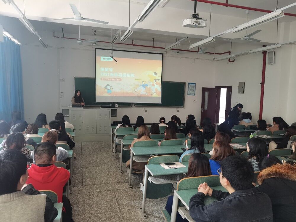 3月24日下午,猿辅导在线教育重庆公司在知行楼A105举行专场招聘会。公司学工办主任邹盛瑜,2021届辅导员张铁红,部分在校毕业生50余人参加宣讲会。猿辅导重庆公司HR高老师主讲此次会议。