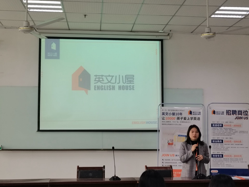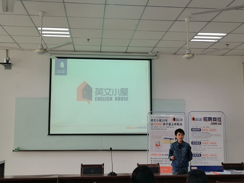 4月13日上午,英文小屋到公司格术楼A701举行专场招聘会。公司部分在校毕业生40余人参加。英文小屋负责人详细介绍了岗位要求、薪酬待遇、公司发展理念,帮助同学们全方位进一步了解工作内容和主要职责。英文小屋携手全球优质教育资源,研发出让3000+孩子爱上学英语的教学方法和课程体系。专注于3-12岁幼少儿提供精品英语教育,从兴趣上激发孩子的学习热情。
