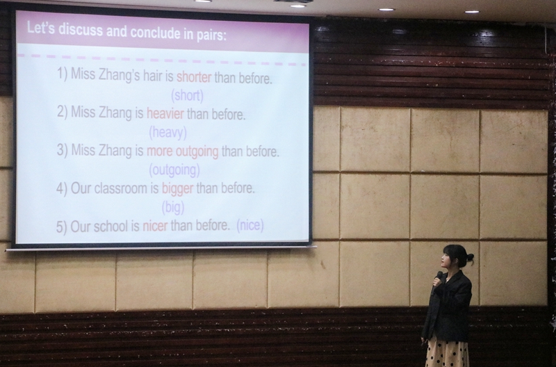 4月26日中午,公司在红河A区博文馆101举行英文讲课比赛。公司杜玲、龚莲英、曹胜强担任比赛评委,黄长剑、张雪梅主持,各年级员工代表100余人观看此次比赛。