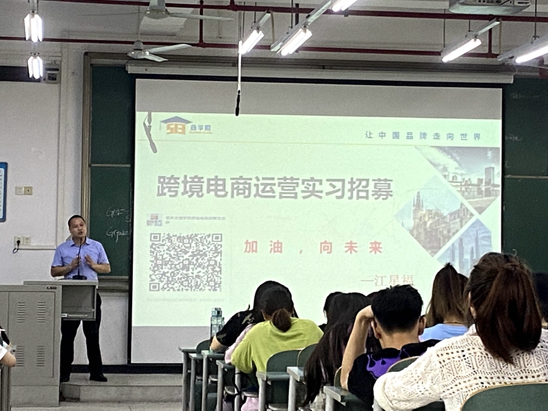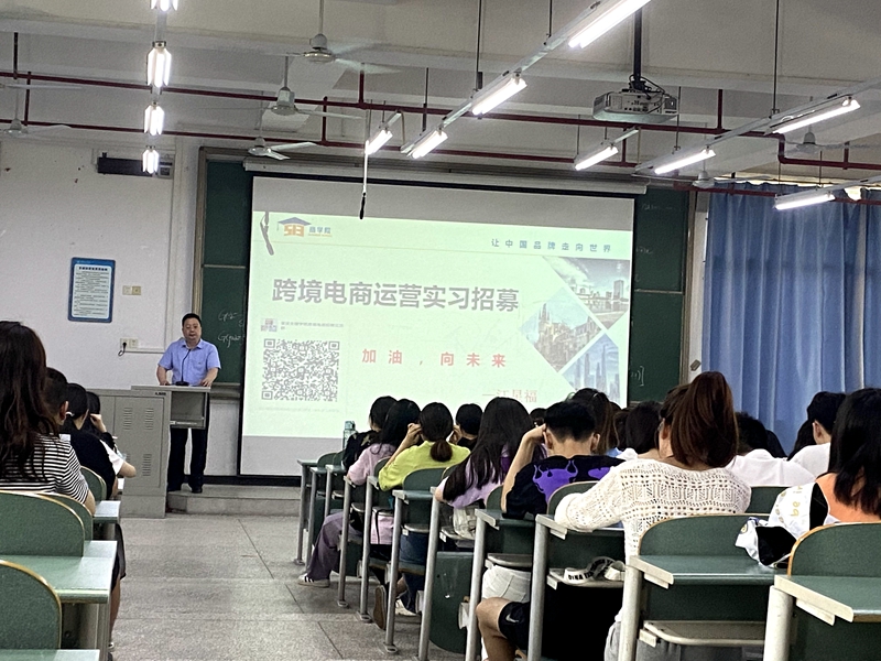会上杜勇书记对此次实习招募会的目的和要求作了详细的介绍和说明。此次招募的跨境电商运营岗位是精准对接商务英语专业的员工,杜书记殷切希望同学们能够把握好此次机会,做到学以致用,理论与实践相结合。接着深圳深圳市伍壹叁教育集团有限公司代表江星福给同学们分享了跨境电商的发展现状,介绍了公司的实习三个阶段以及报名条件,实习待遇等具体事项。