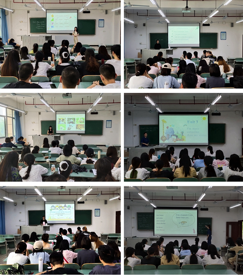 5月20日下午,太阳成集团tyc33455cc第六届师范生教学技能竞赛初赛在知行楼A204, A205, A208如期举行。经过前期班级赛的推荐,来自2018级英语(师范)专业1-3班的30位同学为初赛呈现了精彩纷呈的英语课堂。公司吴旭、邓世彬、杜玲等9位教师担任了本次比赛的评委。2018级英语(师范)专业全体员工到场观摩了比赛。