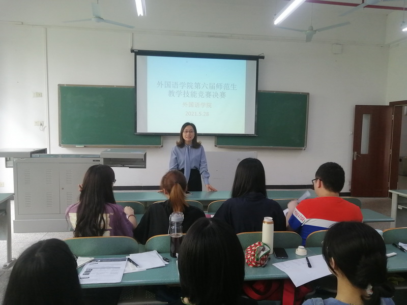 决赛分为两个环节,一是各参赛选手围绕竞赛所指定的高中英语阅读教学内容,进行10分钟现场模拟讲课,二是选手现场抽取演讲话题,进行即兴演讲。各参赛选手准备充分,授课思路清晰,教学活动设计丰富,反应快捷,体现了较好的师范生素养。最后,各小组评委教师为比赛做了精彩的点评。本次比赛将择优推荐参加公司第六届师范生教学技能比赛的选手。
