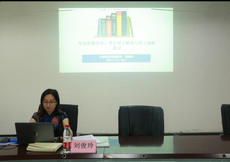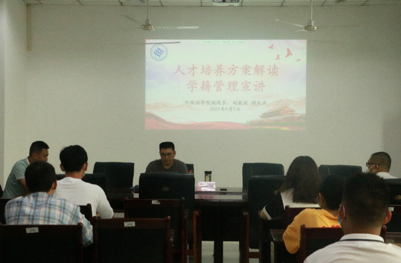 副经理胡庆洪对人才培养方案做了细致解读,并宣讲了学籍管理细则,强化了同学们的专业认识;副经理刘俊玲对专业思想学习、英语专业人才培养方案以及学位授予等进行了讲授,希望同学们培养良好的专业思想和学习策略。