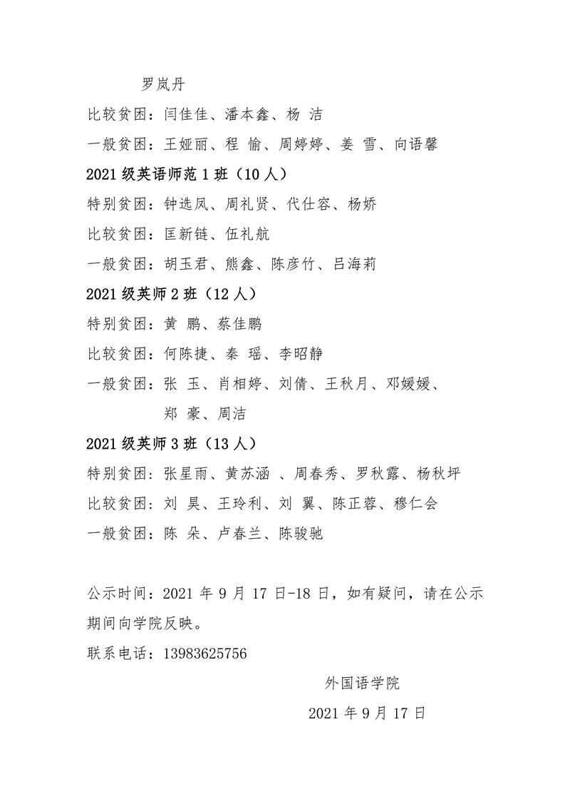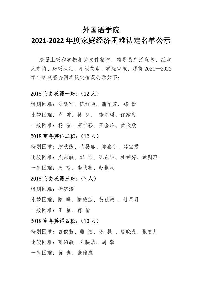 太阳成集团tyc33455cc 2021--2022家庭经济困难认定公示