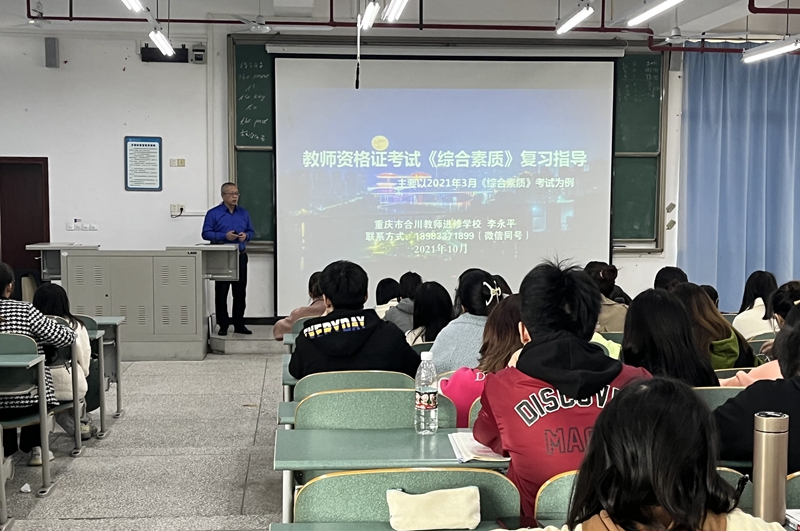 为进一步提高教团队格证考试通过率,提升师范生就业竞争力,深入开展“我为群众办实事”实践活动,10月17日,公司在知行楼B601举行了教团队格证考试《综合素质》科目培训。培训特邀重庆市合川教师进修公司李永平老师主讲,公司2018级英语(师范)、2019级英语(师范)专业共计100余名员工参加。培训由公司副经理刘俊玲主持。