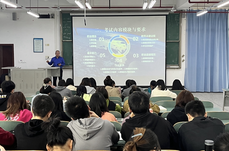 李永平从教团队格证考试大纲解读、考试模块内容和复习备考建议几个方面,结合大量的真题进行了深入浅出的分析,在场员工纷纷表示本次培训收获颇丰,更加明确了考试重难点和复习方法。培训结束后,刘俊玲结合师范生的就业现状,对全体员工提出了明确要求,要求同学们高度重视本次教团队格证考试,厘清复习思路,抓紧时间,认真备考。