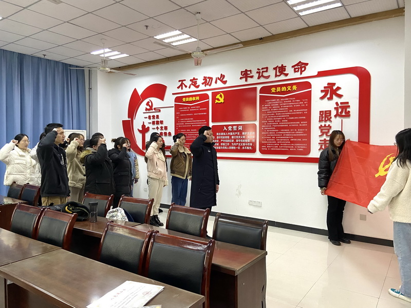 2021年12月16日中午,公司党总支员工支部在格术楼C603会议室举行本学期新发展党员宣誓仪式,仪式由员工支部书记邹盛瑜主持。