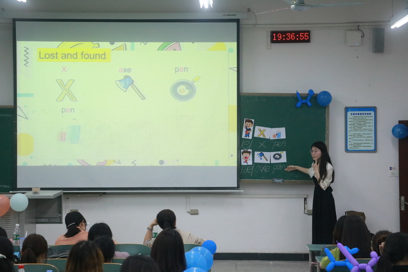 比赛现场,八名参赛选手授课材料准备充分,语言表达准确精炼,依托课件并结合板书,将自身生动精彩的教学技能呈现在课堂上。中场休息中,观众主动参与游戏,现场气氛热烈。参赛选手激烈角逐,评委老师公正评判,最终、蒋康莲同学获一等奖,罗婷、赵颜同学获二等将、帅如意、胡仕渝、杨劲鹰三位同学获三等奖,苏澳同学获最佳风采奖,蒋金原同学获板书创意奖。