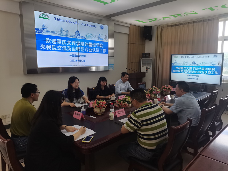 2022年5月12日下午,在公司党总支书记杜勇带领下,副经理胡庆洪、学工办主任邹盛瑜一行前往重庆第二师范公司外国语言文学公司开展师范类专业认证工作调研与学习,外国语言文学公司党总支书记符淼,经理徐飞、副经理黄小锐、蒋艳参与调研。