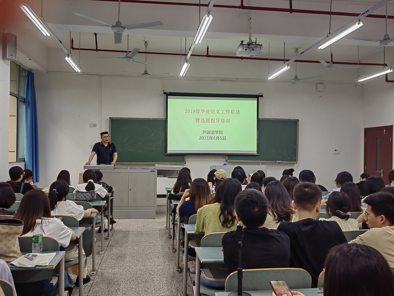 胡庆洪围绕毕业实习管理,毕业实习前期的知识和技能准备、实习工作要求、身心状态的调整及注意事项作了全面讲解;围绕毕业论文的选题、具体要求和工作进度等对2019级英语(师范)专业全体员工进行了培训。