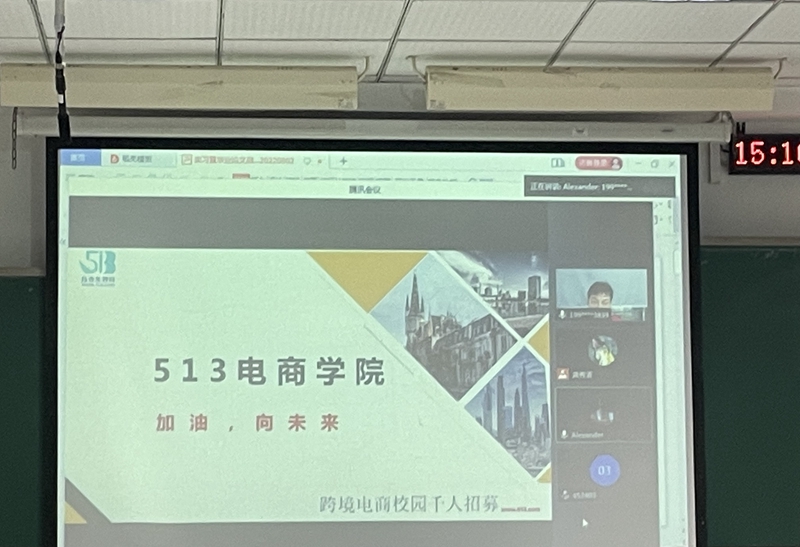 第一阶段,深圳市伍壹叁教育集团有限公司项目总监周晓峰通过线上会议的方式从深圳外贸产业发展、商务英语专业员工的毕业去向、深圳513电商公司对实习生的选拔培训及实习生待遇等方面做了详细介绍和说明。胡庆洪结合近年来公司与企业开展的校企合作模式、实习基地基本情况、实习工作要求及注意事项等方面做了详细讲解。