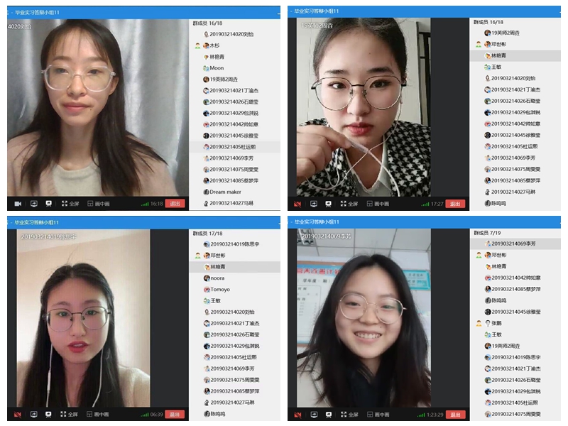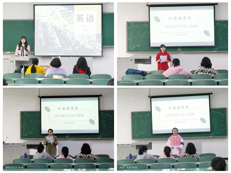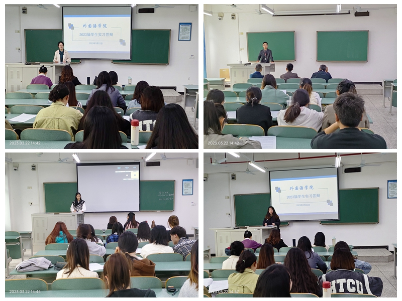 本次实习答辩共有11个小组,其中4个小组为线上答辩,其余7个小组分别在知行楼7个教室进行。答辩会上,每位同学详细介绍毕业实习的全过程,包括实习目的与任务、实习岗位与内容、实习体会与心得等。评委老师结合同学陈述内容,针对性的进行交流和指导,并根据毕业实习要求进行打分。