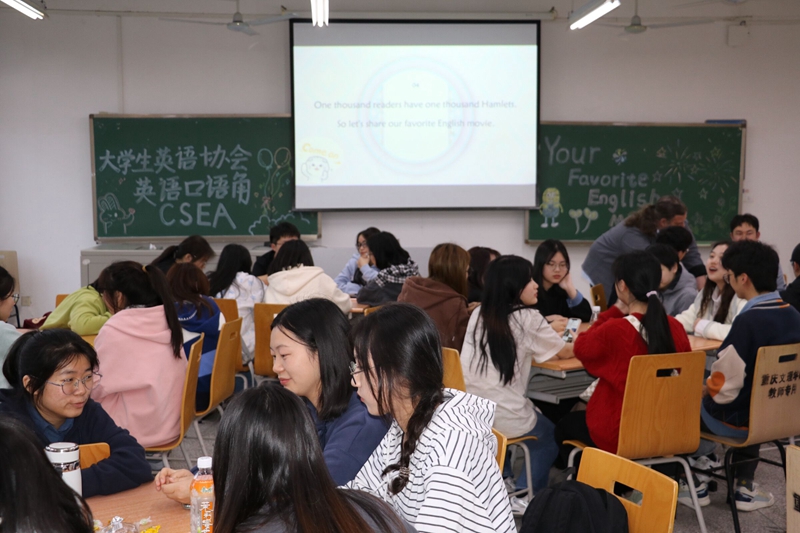 本次活动围绕“Your Favorite English Movies”的主题,同学们积极活跃说出自己的想法,畅所欲言,谈论了自己最喜欢的英语电影。有趣的猜歌游戏环节,同学们乐中学英语;师生自由交流环节,大胆说英语,勇敢地说出来。最后,分享了《肖申克的救赎》中的一句台词“Remember, hope is a good thing, maybe the best of things. And no good thing ever dies.”通过有序而宽松的交流环境,发挥了老员工朋辈互助作用,激发同学们学习积极性和主动性,提高同学们自主学习能力。