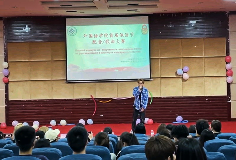 首先进行的是“声临其境”俄语配音比赛。经过初赛的激烈选拔,共有20组选手进入复赛。比赛中,各组选手依次上台进行展示。配音作品中有经典的电影情节、诙谐幽默的动画以及耳熟能详的影视片段。选手们配合默契、热情饱满,他们地道的发音、丰富的情感,让现场观众在声临其境的语境中感受到了俄语语言的魅力。接下来的俄语歌曲比赛,更是把现场氛围推向高潮,无论是经典老歌还是流行歌曲都给观众带来不一样的听觉享受,现场掌声不断。