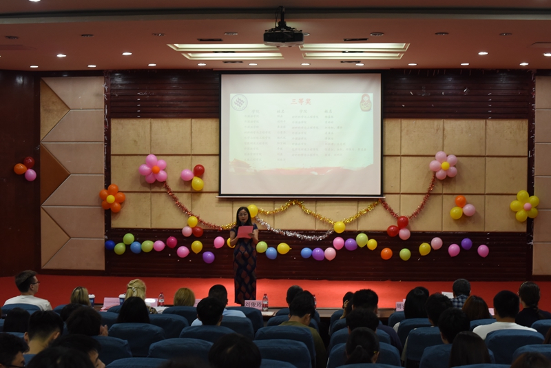 6月2日晚7:00,公司在博文馆101举办了首届俄语文化节颁奖典礼。公司副经理刘俊玲莅临活动现场,受邀出席颁奖典礼的嘉宾有智能制造工程公司副经理赵华君、材料科学与工程公司副经理王锦标、电子信息与电气工程公司副经理张东、美术与设计公司副书记周独奇以及来自俄罗斯和白俄罗斯的公司外籍教师。全校300余名师生到现场观看了颁奖典礼。