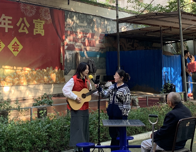下午两点半,公司青年志愿者到达“夕阳之家老年公寓”,他们身着红色马甲给老人们分发礼品,了解他们的身体状况和生活情况,帮助他们打扫清洁卫生,为他们修指甲,现场欢笑声此起彼伏。随后,志愿者们带来了唱歌、跳舞、乐器演奏、朗诵等节目,给他们送去了一场视觉盛宴,丰富了老人们的精神文化生活。