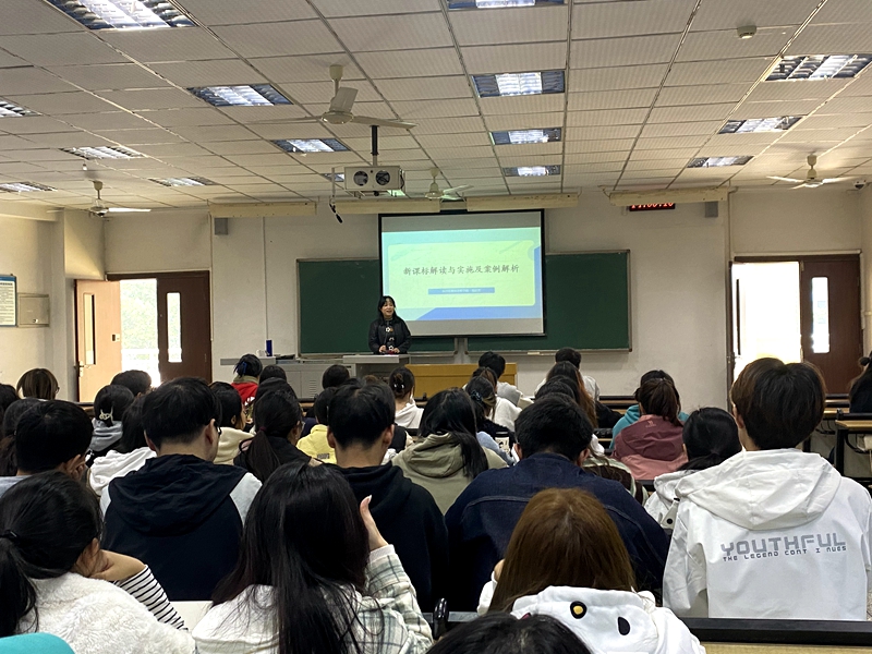 易达芳以“新课标解读与实施及案例解析”为题,就义务教育英语课程标准(2022版)制定的思路与背景、主要内容和英语学科素养,对基于六要素的英语学习活动观,结合了大量的教材研读、教学设计方案进行了深入浅出的解读。讲座中还强调了在英语教学中发展英语学科核心素养、落实立德树人根本任务以及推进现代信息技术与英语教学深度融合的重要性,师生们纷纷表示受益匪浅。
