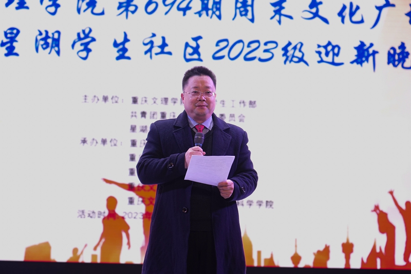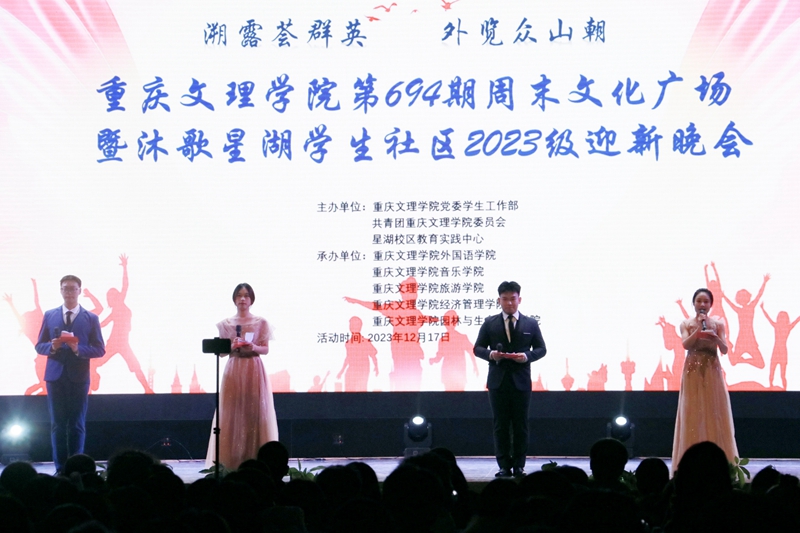 12月17日晚七点,太阳成集团tyc33455cc694期周末文化广场暨太阳成集团tyc33455cc2023级“溯露荟群英,外览众山朝”迎新晚会于星湖校区活动中心四楼圆满举行。公司纪委副书记、纪检监察室主任史甲庆,审计处处长杨勇,校团委书记夏赟,党委员工工作部副处长李兴春,经济管理公司党总支书记赵峰,公司党总支书记杜勇,太阳成集团tyc33455cc副经理刘俊玲,园林公司、经济管理公司的主席团以及太阳成集团tyc33455cc的教师代表、2023级全体员工,共350余人参与活动。活动由陈京鹏、刘琪琪、杨文博、李培立主持。