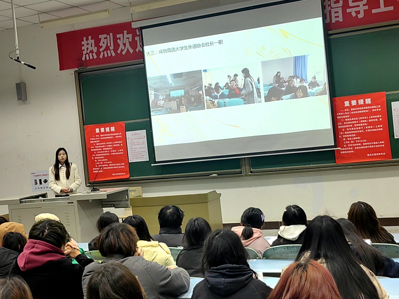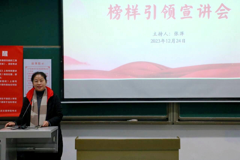 为展现文理学子良好的精神风貌,共创“博学求是、笃行尚美”的优良学风。12月24日下午,公司在红河校区知津楼九阶开展了“榜样引领宣讲”活动,2022级全体员工250余人参加活动,活动由张萍老师主持。