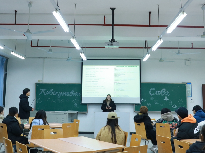 俄语沙龙围绕“Повседневный русский язык(学习日常俄语)”主题,展开对俄语的学习与交流。职工阿西亚通过以日常口语、言语礼节、语言对话等环节讲授,激发大家对俄语学习的兴趣,内容丰富,生动有趣。随后,大家踊跃发言,职工鼓励同学们继续保持对俄语热爱,深入学习俄语,了解俄罗斯的文化。