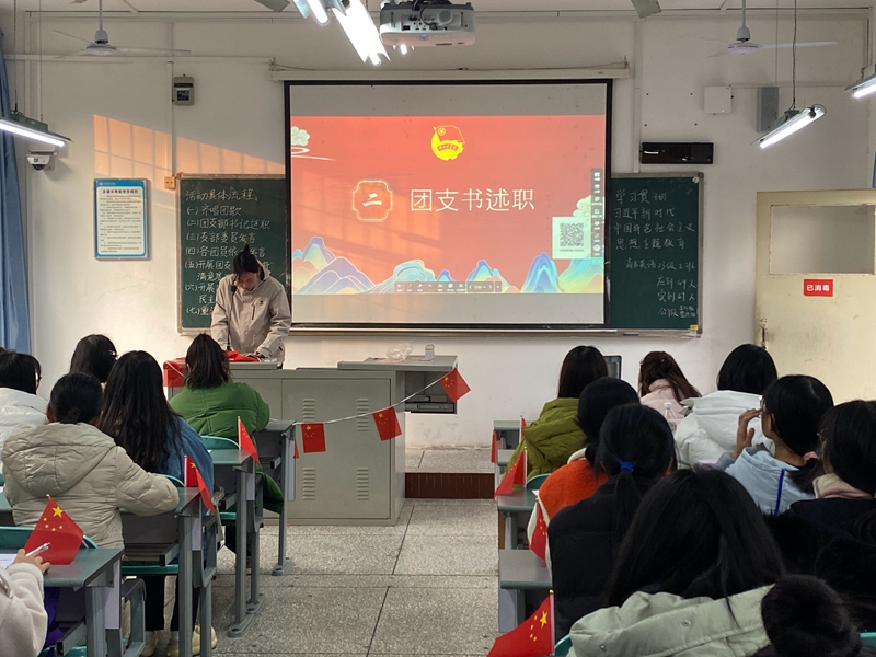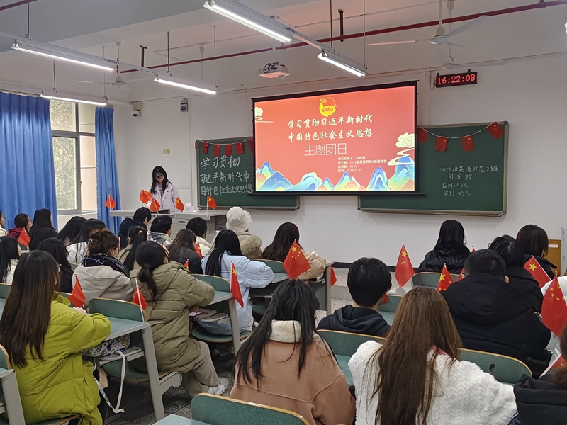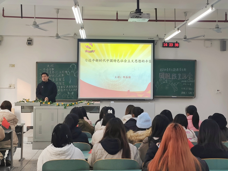 活动期间,团总支书记邹盛瑜深入2022级商务英语2班,开展了以“习近平新时代中国特色社会主义思想的丰富内涵”为主题的党课。他从我国的历史性成就和变革、我国社会主要矛盾的变化、新时代的丰富内涵和时代意义邓方面阐述了我国特色社会主义进入新时代、以及习近平新时代中国特色社会主义思想的丰富内涵。