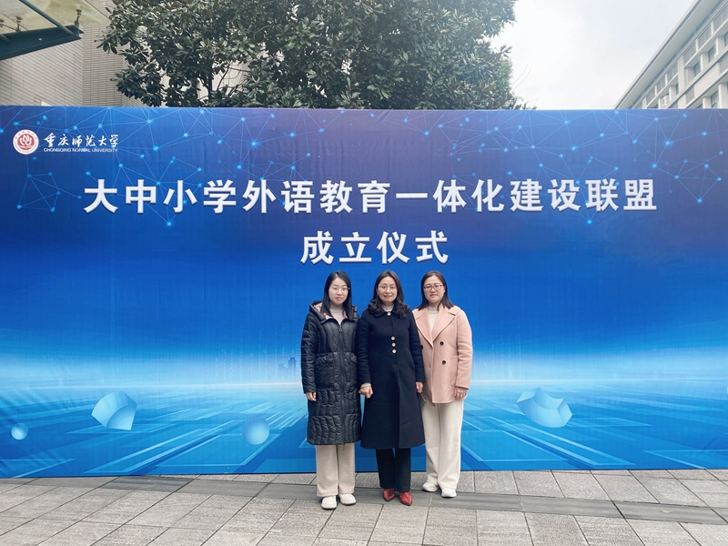 2月29日下午,由重庆师范大学联合重庆高新区教育事务中心、上海对外经贸大学、北京师范大学、华东师范大学等单位共同发起成立的“大中小学外语教育一体化建设联盟”成立仪式在重庆师范大学集贤楼412举行。作为联盟共同发起单位之一,公司副经理刘俊玲受邀带领英语师范教研室主任杜玲、英语课程与教学论教师林艳青共同参加了成立仪式。
