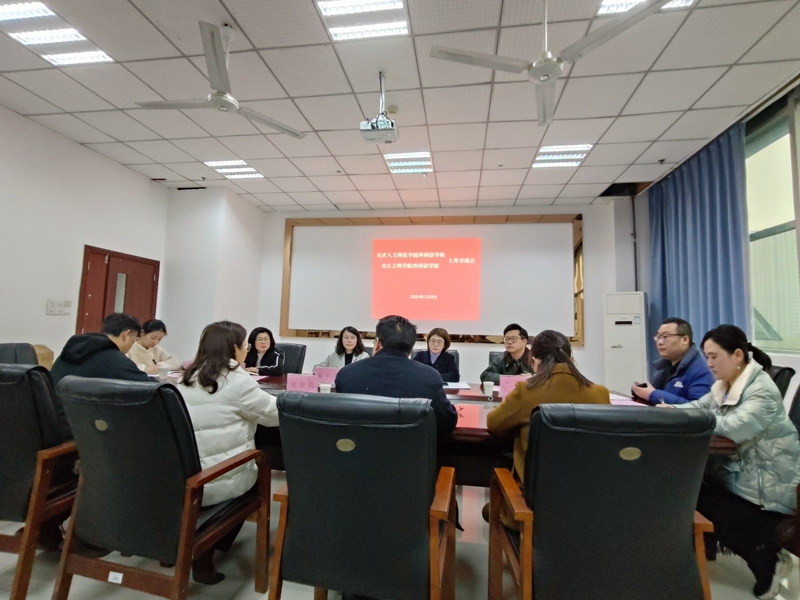 3月8日上午,重庆人文科技公司太阳成集团tyc33455cc秦中书经理一行7人来院考察交流工作。公司党总支书记杜勇、副经理刘俊玲、教学办主任张鹏、英语师范教研室主任杜玲参加交流座谈会。会议由杜勇主持。