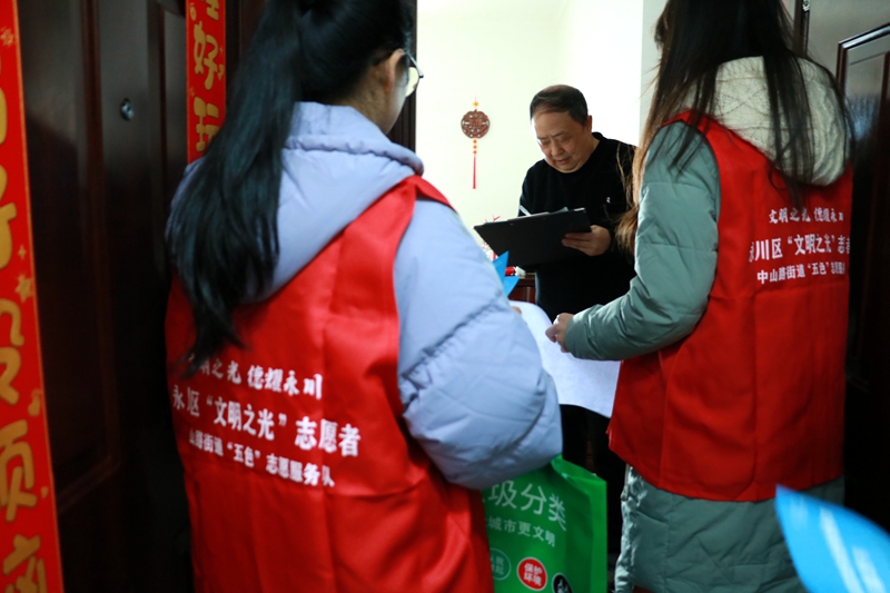活动前,桃花岛居委会工作人员向志愿者宣讲了垃圾分类的重要性以及此次活动的工作任务;随后,大家带着宣传资料走进楼栋,与居民“一对一”沟通交流。在入户过程中,志愿者耐心细致为每户居民讲解垃圾分类的知识,引导居民住户签订垃圾分类承诺书。志愿者纷纷表示,垃圾分类利国利民,我们携起手来共同参与到垃圾分类工作中来,养成垃圾分类的好习惯,为低碳生活增添色彩。