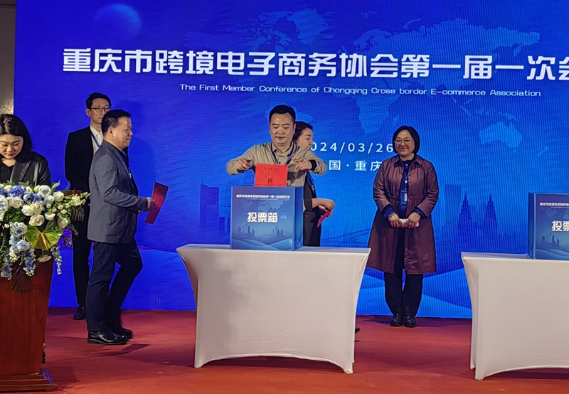 大会审议通过了重庆市跨境电子商务协会筹备工作报告、选举办法、协会章程、会费缴纳及管理办法,投票选举了第一届理事、监事。第一届会长单位阿朗斯(重庆)跨境电商产业园管理有限公司董事长廖红海发表讲话。李云代表公司参加了投票,并与相关企业进行了沟通交流。